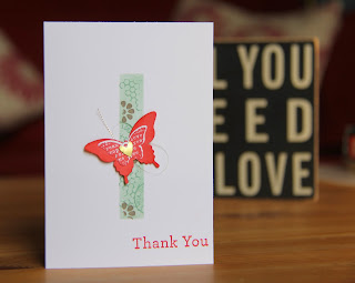 My card is an example of my swaps that I made for the regional event. Regular readers will know that it is a pastime/tradition for Stampin' Up! demonstrators to share ideas and inspiration in the form of swaps at events. I used my now favourite stamp set By The Tide which includes all the stamps you see on this card and more. The colour combo is simple and elegant in crumb cake, very vanilla, pink pirouette and early espresso and as you know I like a little bling so there is a little glitter on the pretty seashell. I used strands off of a piece of burlap to add a little fishing net to the banners along with a simple staple!