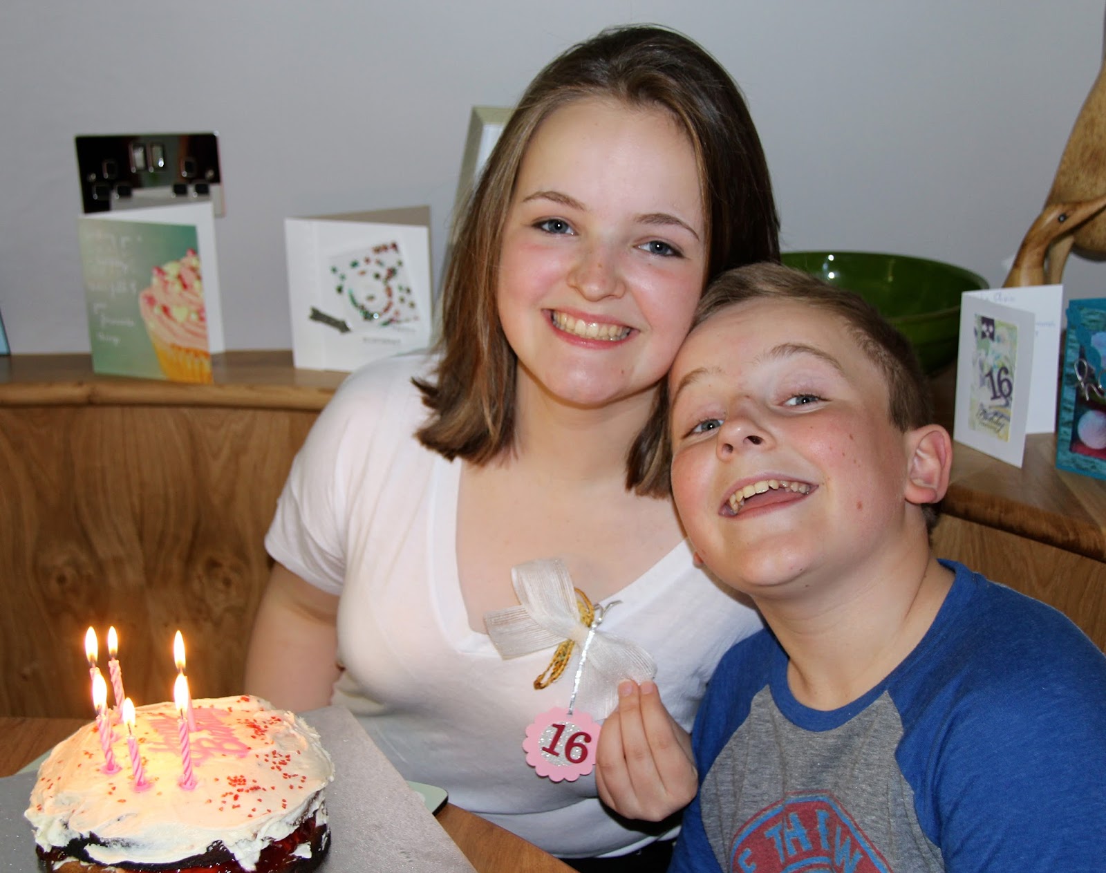 On a different note. Today we are celebrating our Olivia's birthday. She's sweet 16 today and we are so proud of our lovely daughter. Bless him, Charlie, made his first ever cake for her and it wasn't a bad attempt by any means and you can see she was thrilled.