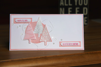 I've stamped and embossed different trees from the popular Stampin' Up! Festival of Trees stamp set with it's coordinating tree punch. If you missed it in the winter catalogue you'll be glad to know it's now in the new annual Stampin' Up! catalogue and is still part of a bundle price giving you 15% when you buy the stamps and punch together.