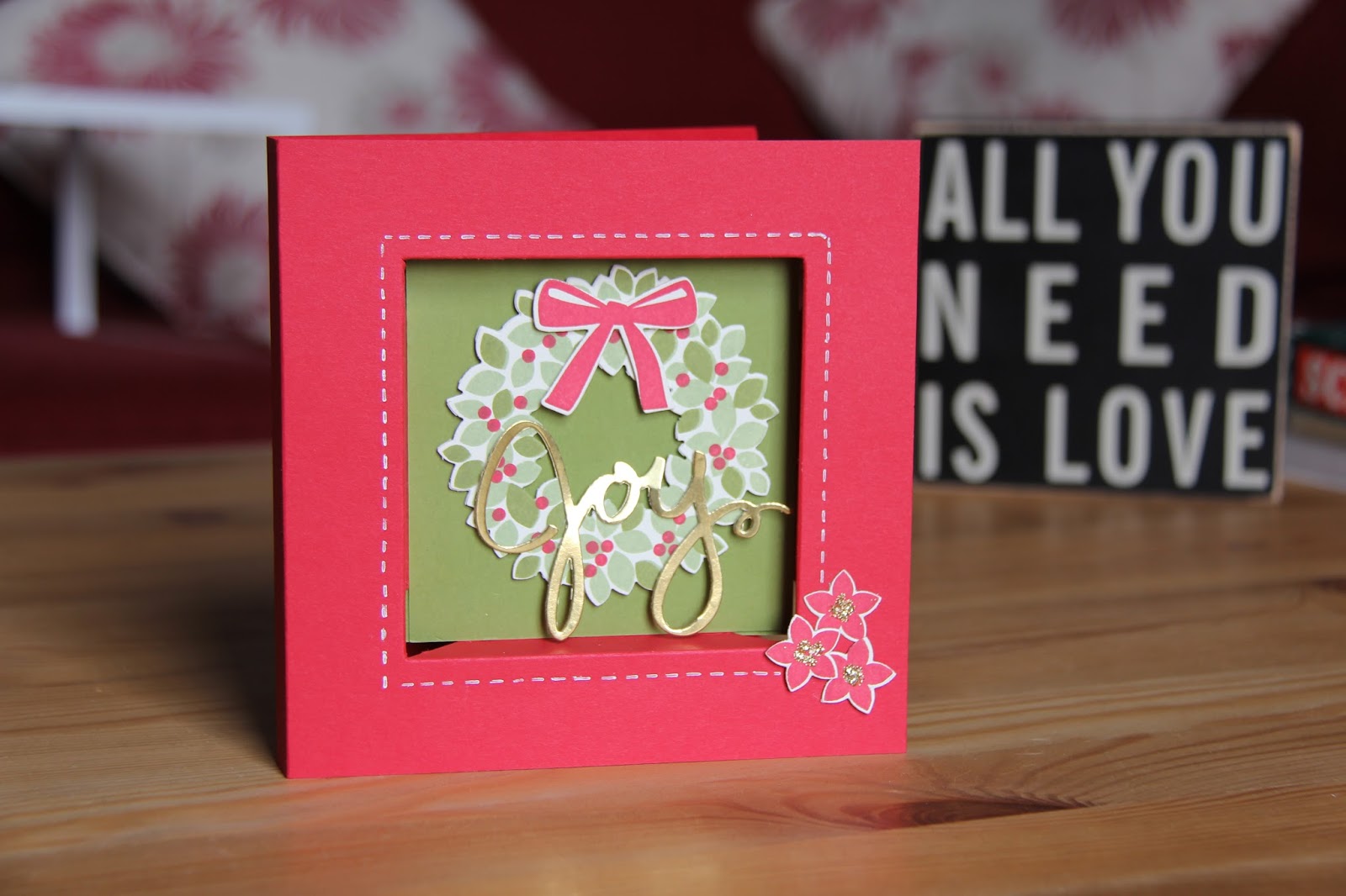 But I've started as usual with resolve to achieve it and held my annual Christmas in July class last Saturday.  We had such a fun time making cards, gift bags and these two super projects; a festive plaque to adorn your home and a box card the dimensions of which were taught to me by my lovely downline Linda.  The box card works well with any stamp set you may choose and can be decorated simply or ornately.  For the class we went for simple elegance and everyone agreed that it was enough in amongst the busy day of other projects.