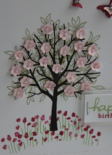 I'm also glad as I've brought back to life a stamp set that a friend was ready to throw away.  She managed to lose half of her Stampin' Up! UK Sheltering Tree set and decided that without the blossom part and swing etc it was useless, but me being the Magpie that I am rescued it from her to show that it was still useful.  I used it first on my last post with a wintery scene for a Christmas card which was easy with a bare tree, but today I've matched it with another stamp set, Awesomely Artistic, to give the bare tree life with leaves!