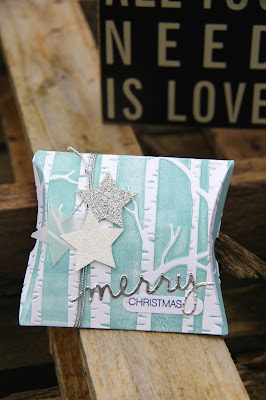 Stampin' Up! Woodland Embossing Folder has been a huge hit with many of us. It is such a fun folder with more uses than just straight embossing. In addition to 'just' embossing you can use a brayer to add colour to the deboss side otherwise known as the side with printing on the folder and can then create popping silhouette trees like these on this pretty gift box. The box is created using the new Square Pillow Box Thin lit dies which are in the Stampin' Up! winter catalogue along with the folder. The folder will disappear on 4 January as it's on the retiring product list. It could go even sooner if it sells out so if you've had your eye on it please don't miss out and order one now.