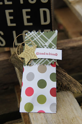 My sentiment is from the Stampin' Up! winter catalogue set Oh , What Fun which co-ordinates with the Oh What Fun Tag Project Kit. Some baker's twine and linen thread and you have all the makings of brown paper packages tied up with 'posh' string.