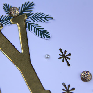 Using my Stampin' Up! large letter dies I've cut the word joy in gold foil card and then very gently added some pine fronds from the foliage perfect Stampin' Up! set Peace This Christmas which will appear in the new Stampin' Up! 2017 - 2018 catalogue. It also has the very delicate star stamp and I've also used some pearls and new gold faceted gems that you are going to adore for adding some sparkle to your projects.