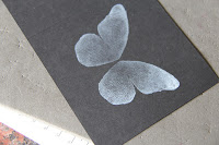 Then add the layers of design for the butterfly following the same process stamping in white craft (pigment) ink and drying with a heat tool.