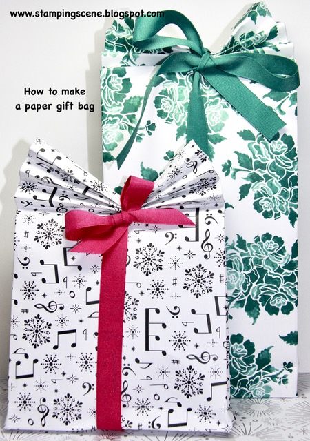 Here are some more examples of the bag.  You can use any paper the normal Stampin' Up! Designer series paper is great as well as the slightly lighter weight specialty papers, you do need a  bone folder to create the folds though with both types.